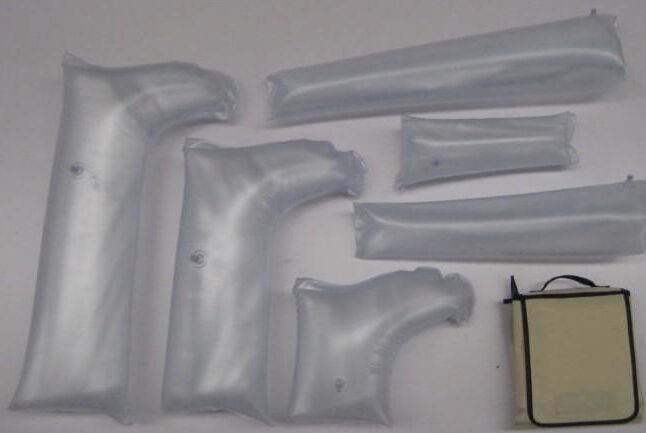 充氣夾板的氣囊放氣只需推拉閥門(mén),經(jīng)過(guò)簡(jiǎn)單培訓(xùn)即可使用。它可被X射線(xiàn)穿透,是理想的急救用品。 充氣夾板可通過(guò)縮減尺寸用于兒童(半身或全腿),拉鏈便于解脫。